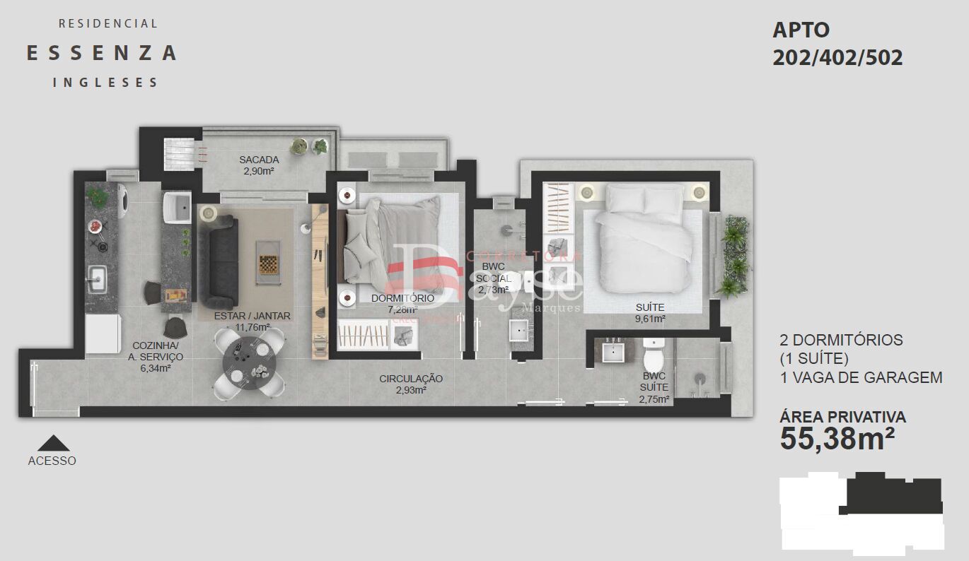Área Privativa55,38m²